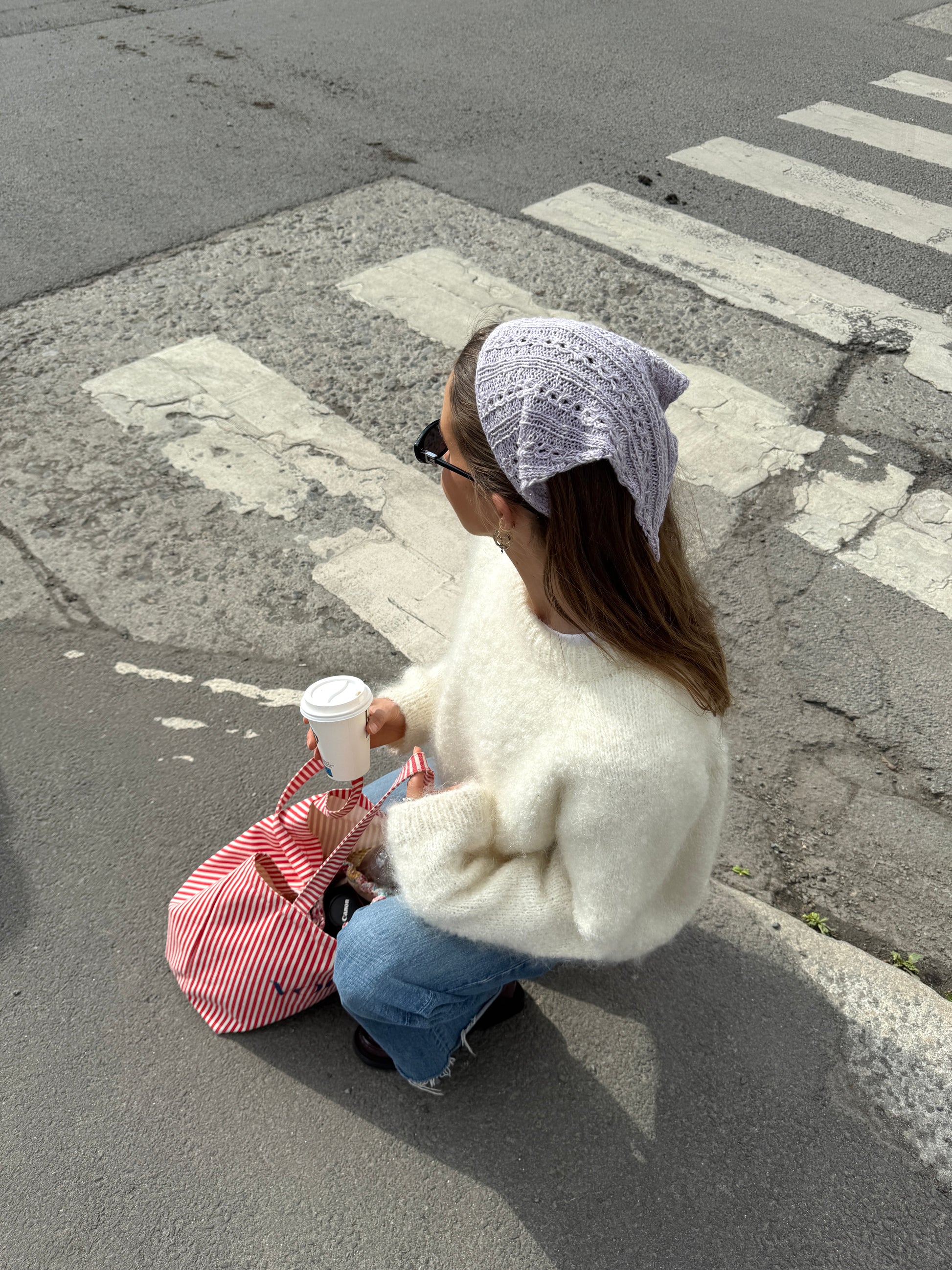Den lyselilla Thelma Bandanaen er strikket i Silk Linen fra Kit Couture i fargen lyslilla [5844]